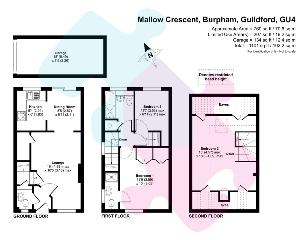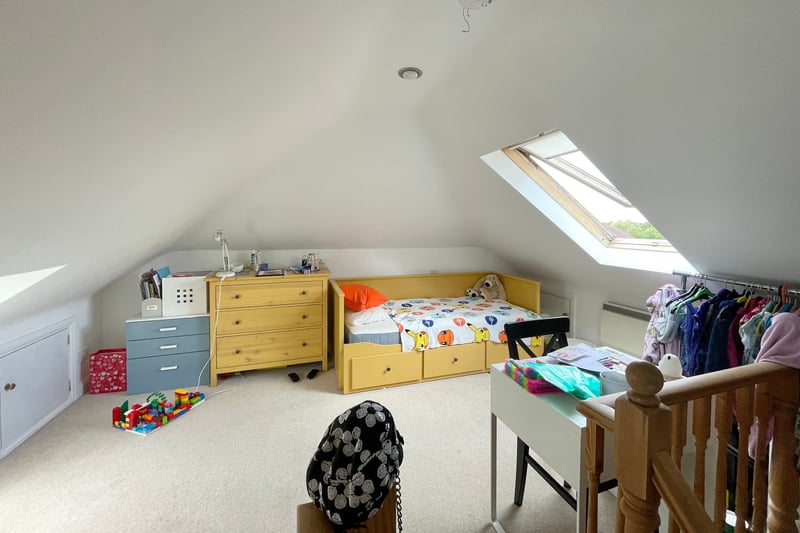 Accommodation downstairs comprises; a living room to the front of the house, across the back of the property is both the kitchen and dining room which has sliding doors to the rear garden. Also downstairs is a cloakroom. On the first floor are two bedrooms, the main bedroom benefitting an ensuite shower, and a family bathroom. On the top floor is a large bedroom with velux windows.