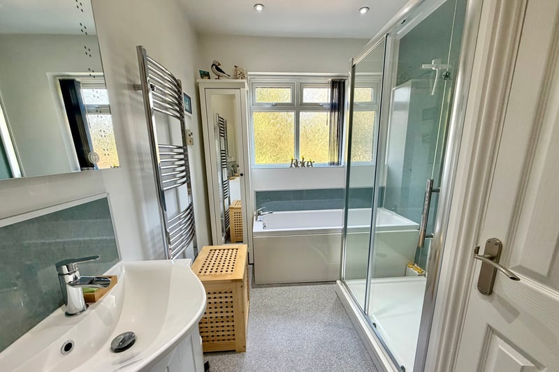 Accommodation comprises four well-proportioned bedrooms, including three substantial doubles and a good-sized single. The principal bedroom impresses with direct access to a spacious dressing room and a contemporary en-suite shower room, providing a private sanctuary for relaxation. The family bathroom has been thoughtfully refitted to include a separate shower cubicle, a bathtub, and there is also a separate WC for added convenience.