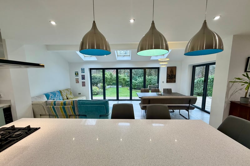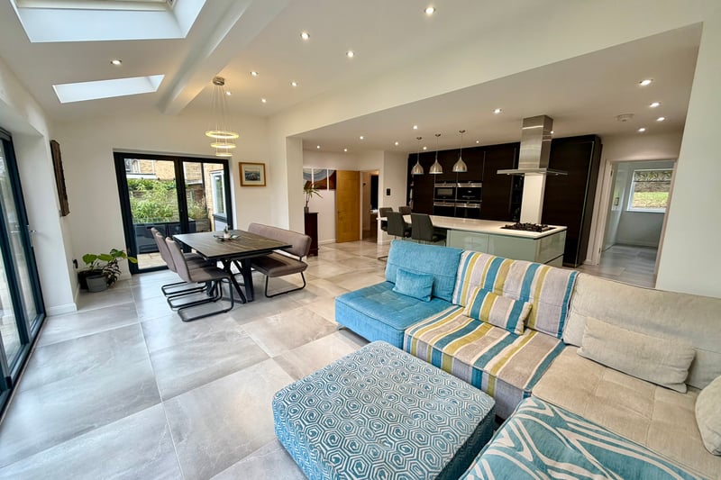 Step inside to discover three generously sized reception rooms, providing versatile spaces to relax, entertain, or work from home. The heart of the property is the spectacular, refitted kitchen/dining/family room, measuring approximately 24ft by 22ft. This all-encompassing open-plan area benefits from an abundance of natural light and offers ample space for cooking, dining, and socialising, creating the perfect hub for everyday family life.