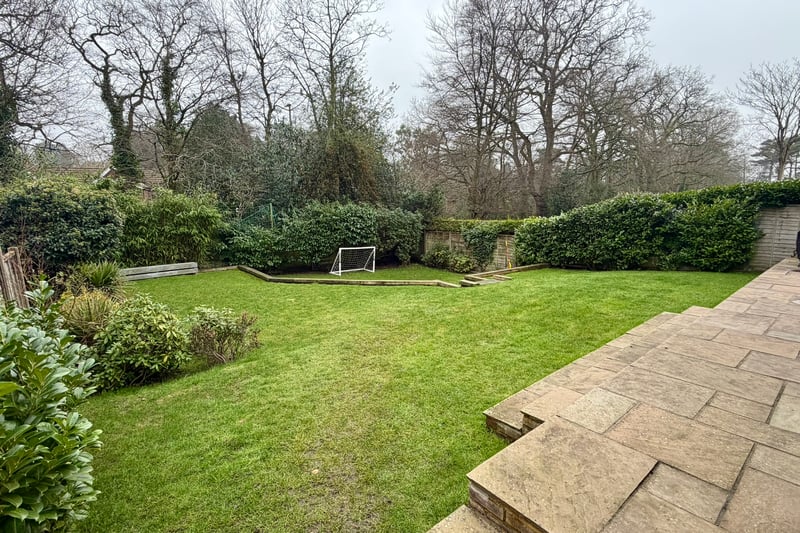 Outside, the property enjoys a large southeast-facing garden, perfect for enjoying sunny days, family gatherings, or simply relaxing in a peaceful, private setting. The mature landscaping enhances the outdoor space, offering plenty of room for children to play or for keen gardeners to cultivate their green spaces.