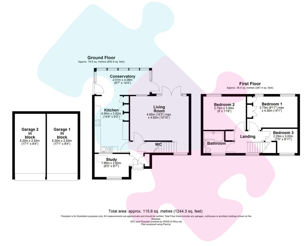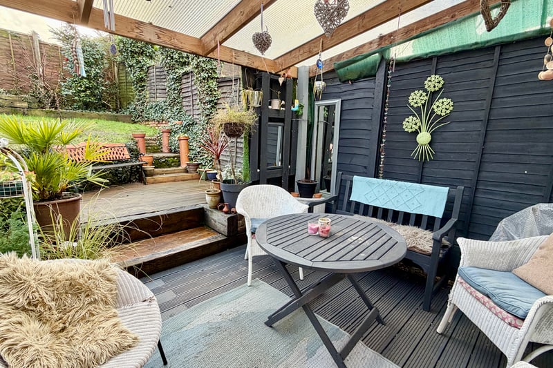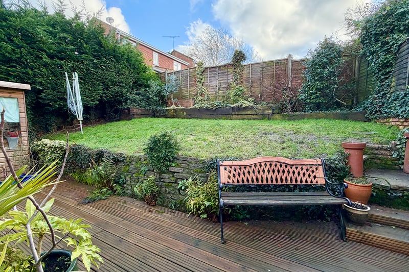 Accommodation comprises three bedrooms, a living room, study and an open plan and re-fitted kitchen/breakfast room which opens directly into the conservatory. Further benefits include a downstairs cloakroom, family bathroom and gas central heating. Outside there is a sunny aspect garden with a secluded decked area directly outside the house with the remainder of the garden laid to lawn with further raised decking areas. There is a large potting shed and side access to the front of the property. The parking area is located a short distance from the property where there are two garages with private parking for two cars directly opposite. There is further parking opportunities in the road and adjacent communal car park areas.