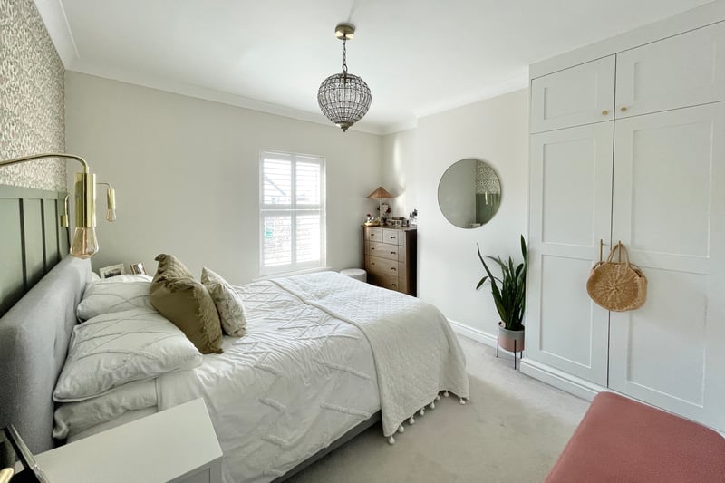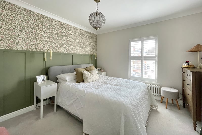 Upstairs are two generous bedrooms, the main room has a fitted double wardrobe and a feature wall with wood panelling. The second bedroom has a fitted cupboard and overlooks the rear garden. The family bathroom has been stylishly refitted and includes a deep bath with rainfall shower, and fitted double cupboard.